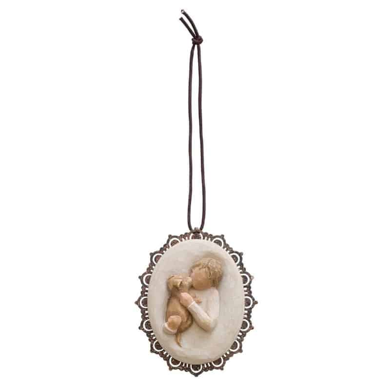 Willowtree Figur Kindness Boy mit Hund als Anhänger ist ein wunderbares Geschenk für Hundefreunde.